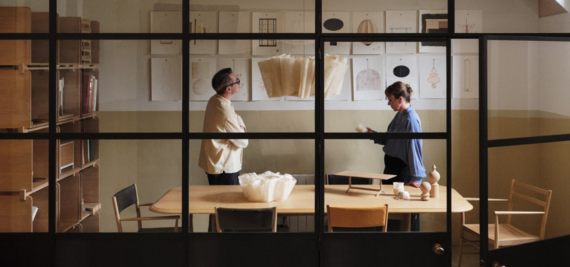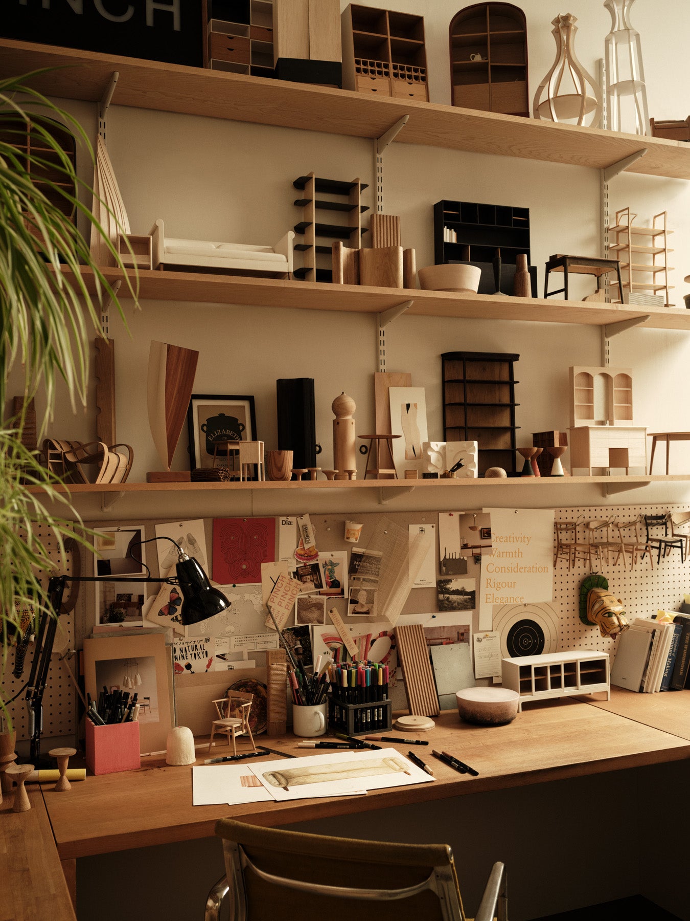 As the HQ and heartland of our company, our studio is designed to encourage and nurture creative thought and ideas, and to ensure a sense of collaboration and shared goals across our teams. People and pieces of furniture sit side by side, moving in rotation with our latest shoots and product development projects. Models and sketches line the shelves, remnants of past projects and soon to be realised ideas.
